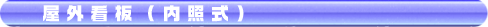 内部に蛍光灯やLEDを組み込んで内部より板面を照らすタイプです。この方式は広告面がよく見える上、品よく仕上がります。価格は外照式よりかなり高くなりますが、使用場所で周囲に影響が出る可能性が低いので、予算があればお勧めです。 現在は重量による安全対策と価格の面より2m以上の電照看板にはFFシート(テント生地)使用が主流になっています。